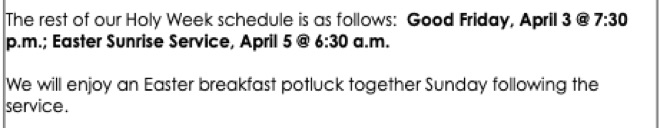 Calendar and Readings Week of 3/29/26