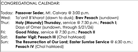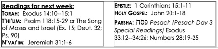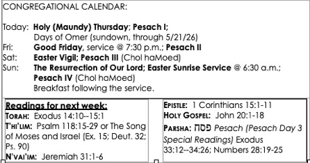 Calendar and Readings Week of 4/5/26